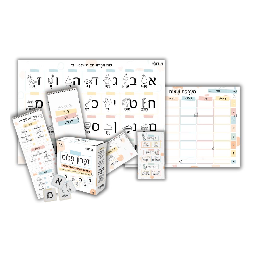 ✓ מערכת שעות ✓ ארגונית לקלמר ✓ טודולי יומי (סדר יום) ✓ לוח א-ב ✓ משחק זיכרון